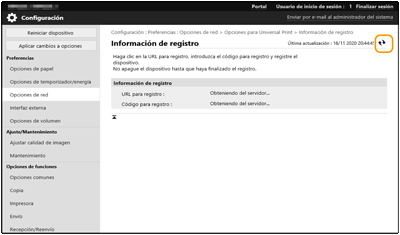 Haga clic en [Opciones de red]  [Opciones para Universal Print]. <Opciones para Universal Print>
