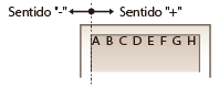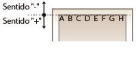 É necessário um ajuste da posição de impressão quando as marcas de confirmação da posição de impressão estão desequilibradas. A direção da posição de impressão pode ser especificada utilizando um valor positivo (+) ou negativo (–), e a distância pode ser especificada em milímetros. Para executar um ajuste vertical, programe um valor negativo (–) para mover a posição de impressão para cima ou um valor positivo (+) para mover a posição de impressão para baixo. Para executar um ajuste horizontal, programe um valor negativo (–) para mover a posição de impressão para a esquerda ou um valor positivo (+) para mover a posição de impressão para a direita.