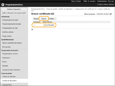 Selecione o certificado da CA que pretende gravar e clique em [Registar].