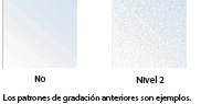 Si selecciona [Nivel 1] o [Nivel 2], y aplica gradación a los tonos medios, los gráficos e imágenes puede aparecer granulados. "Aplicar a gráficos" y "Aplicar a imágenes" sólo se muestran cuando se selecciona [Nivel 1] o [Nivel 2]. |
