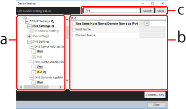 This section describes the procedure for editing device settings information with this software on the [Edit Device Setting Values] screen of the [Device Settings] window.