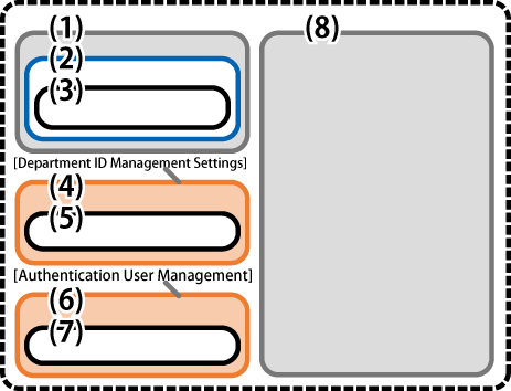(1): | Categories for editing (excluding the [Department ID Management Settings] and [Authentication User Management] categories) |