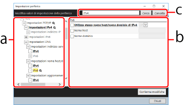 b. Elenco delle impostazioni