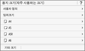 용지를 가로 방향으로 적재하는 경우 [A5]를 선택합니다. 용지를 세로 방향으로 적재하는 경우 [A5R]을 선택합니다.