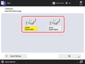 You can select whether to use the collate or group setting when the copied paper is output.