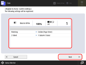 Add buttons to the [Home] screen buttons for frequently used scan, copy, and other settings and destinations.