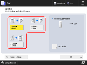 Copy ScreenThe [2-Sided Settings] screen is displayed.