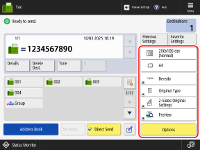 [Home] ScreenThe fax screen is displayed.