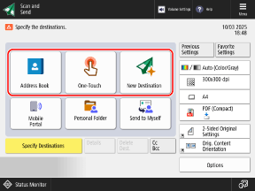 Scan SettingsWhen "Favorite Settings" are registered, you can call them up by pressing [Favorite Settings].