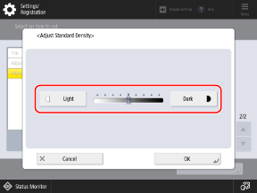 The overall density of the printed material, including filled areas, text, lines, and intermediate densities are adjusted. This setting should mainly be used to adjust the maximum density.