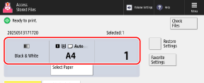 On the file selection screen of Mail Box, select a file and press [Print] to display the print settings screen.