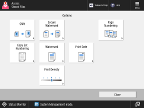 Embedding a Watermark When Copying (Secure Watermark)[Page Numbering] / [Copy Set Numbering] / [Watermark] / [Print Date]