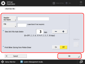Configure the Mail Box settings, and press [OK].