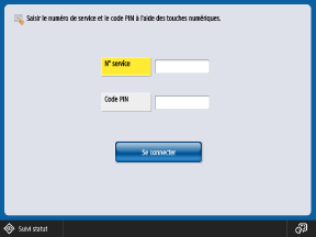 Lorsque la gestion des ID de service est activée, vous devez saisir l’ID de service et le code PIN pour vous connecter lorsque vous utilisez le panneau de commande ou l’interface utilisateur distante.