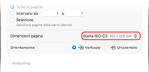 In [Dimensioni pagina], selezionare il formato delle buste caricate.