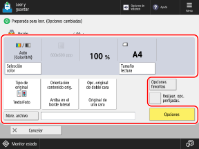 Opciones de escaneado* Los elementos que aparecen en la pantalla varían en función del modelo y las opciones.