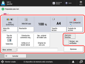 Para seleccionar una ubicación de almacenamiento distinta, pulse [Cancelar] en la parte inferior izquierda de la pantalla.