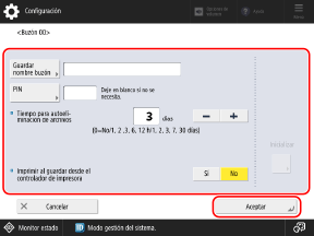 Configure las opciones del Buzón de correo y pulse [Aceptar].
