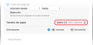 En [Tamaño del papel], seleccione el tamaño de los sobres cargados.
