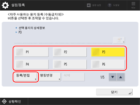 용지 정보가 이미 등록된 버튼을 선택하면 등록된 정보를 덮어쓰게 됩니다.