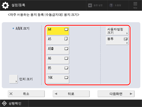 수동 급지대에서 자주 사용하는 용지 설정 등록