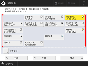 * 적재된 용지 종류가 목록에 표시되지 않는 경우 해당 용지 종류를 등록합니다.