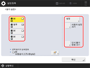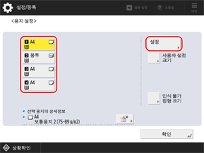 용지 크기와 종류가 설정됩니다.
