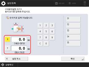 자주 사용하는 비표준 크기를 등록한 경우 [S1]~[S5]를 눌러 해당 크기를 호출할 수 있습니다.