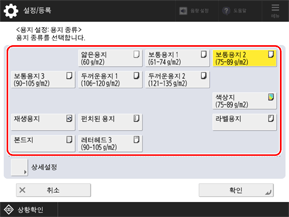 * 적재된 용지 종류가 목록에 표시되지 않는 경우 해당 용지 종류를 등록합니다.
