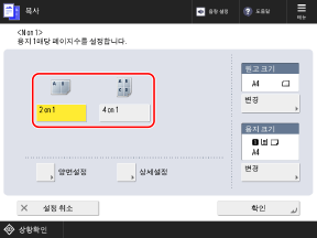 복사 화면에서 [기타 기능] [N on 1]를 누릅니다. 복사 화면