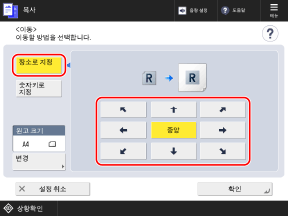 N on 1이 설정된 경우 원고 위치가 자동으로 중앙으로 설정됩니다. 원고 위치를 수동으로 변경할 수도 있습니다. 원고 위치 조정(이동)