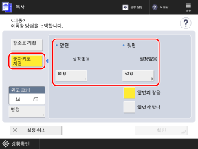 복사 시, 원고의 레이아웃 설정을 구성할 수 있습니다.