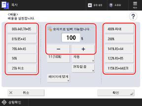 복사 화면[배율] 화면이 표시됩니다.