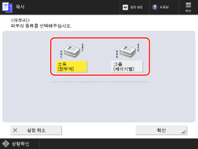 복사한 페이지가 출력될 때 소트 또는 그룹 설정 사용 여부를 선택할 수 있습니다.