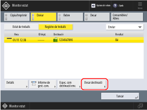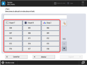 Si deseu una destinació des de la pantalla de lectura o de fax, aquest pas no és necessari. Aneu al pas