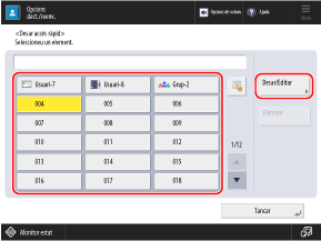 Podeu marcar caselles de selecció per a diversos usuaris (fins a 256 usuaris) i desar-los tots junts. Per marcar les caselles de selecció de tots els usuaris que es mostren, premeu [Tot (màx. 256)].