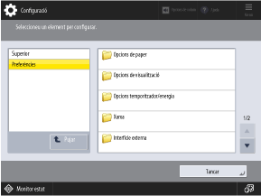 Configuració] al tauler de control. Utilitzeu aquesta pantalla per configurar els diversos paràmetres de l'equip.