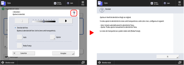 Premeu [Fi] a la pantalla d'ajuda per sortir i tornar a la pantalla anterior.