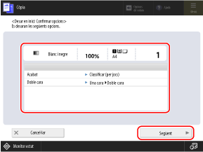 A continuació, apareixerà la pantalla de còpia.