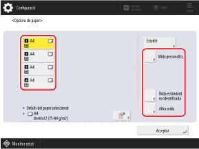 Si s'ha carregat paper d'una mida que no es detecta automàticament, premeu [Mida estàndard no identificada] per seleccionar la mida del paper carregat.