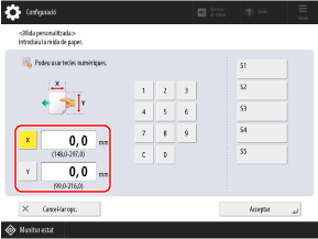 Quan es registren mides no estàndards d'ús freqüent, podeu escollir-les prement de [S1] a [S5].