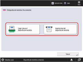 [Seleccionar opció en connectar dispositiu de memòria]Podeu seleccionar l'operació de lectura o impressió ràpidament des d'aquesta pantalla.