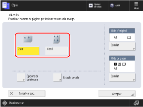 Seleccioneu el nombre de pàgines que voleu combinar en una cara del paper. Per exemple, quan seleccioneu [4 en 1], es combinaran quatre pàgines en una cara del paper.