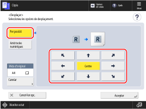 Premeu [Per posició] i premeu un botó de fletxa o [Centre] per especificar la direcció en què vulgueu desplaçar l'original.