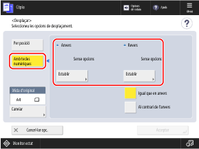 Configureu les opcions de còpia a doble cara per combinar originals d'una cara en les dues cares del paper o per combinar originals de doble cara.