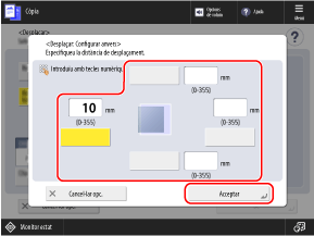 Podeu canviar la posició de tot l'original a una vora o al centre del paper, o bé especificar la distància de desplaçament en mil·límetres.