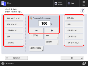 La pantalla [Escala de còpia] es mostra a la pantalla.