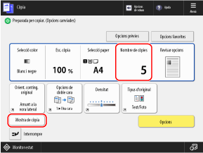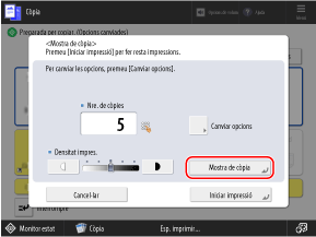 Abans de fer un gran nombre de còpies, podeu consultar el resultat final d'una mostra de còpia per tal de reduir els errors d'impressió i estalviar temps i paper.