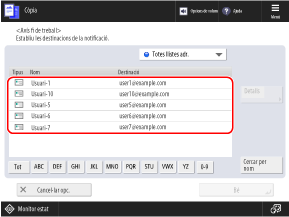 Seleccioneu la destinació (adreça de correu electrònic) que vulgueu definir com a destinació de l'avís.