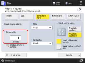 Podeu incrustar números de conjunts de còpies (per indicar l'ordre dels conjunts de còpies). Es poden utilitzar com a números de control per a cada conjunt de còpies.